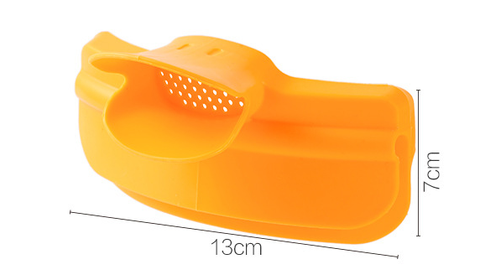 Bright yellow, silicone ducky beak slides onto the side of a saucepan, pot, or bowl so that you can drain foods right from the pot while reducing content spill, and guide liquids into smaller containers with ease.