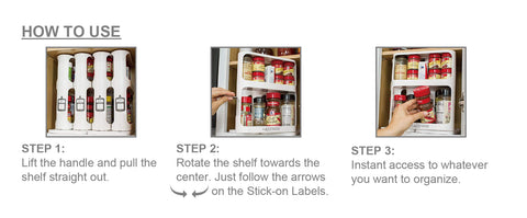 • Its modular, pull-and-rotate design helps you stay organized in spots like kitchen cabinets, cupboards, and craft desks.