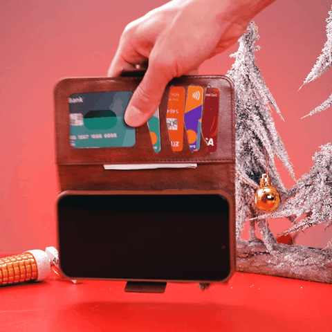 The back cover of the mobile phone wallet case and folios have a strong magnetic attraction.