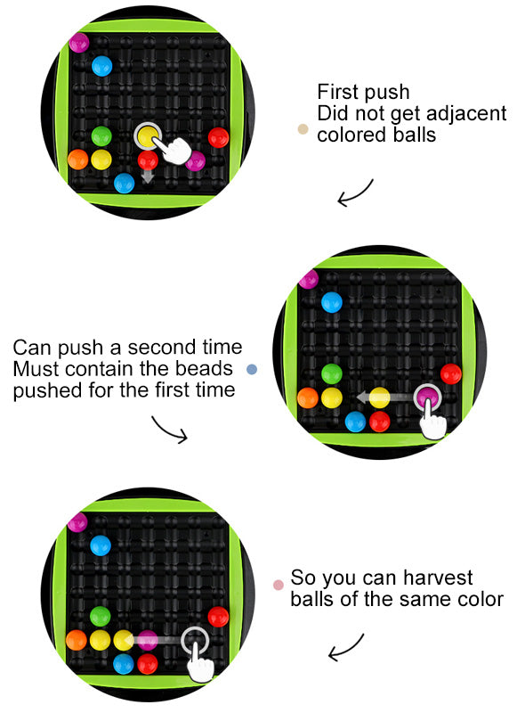 - The gameplay is simple, and the same color can be eliminated. Push a row of beads and hand collect as many adjacent beads of the same color as possible.