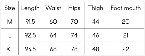 SIZE TABLE (CM)